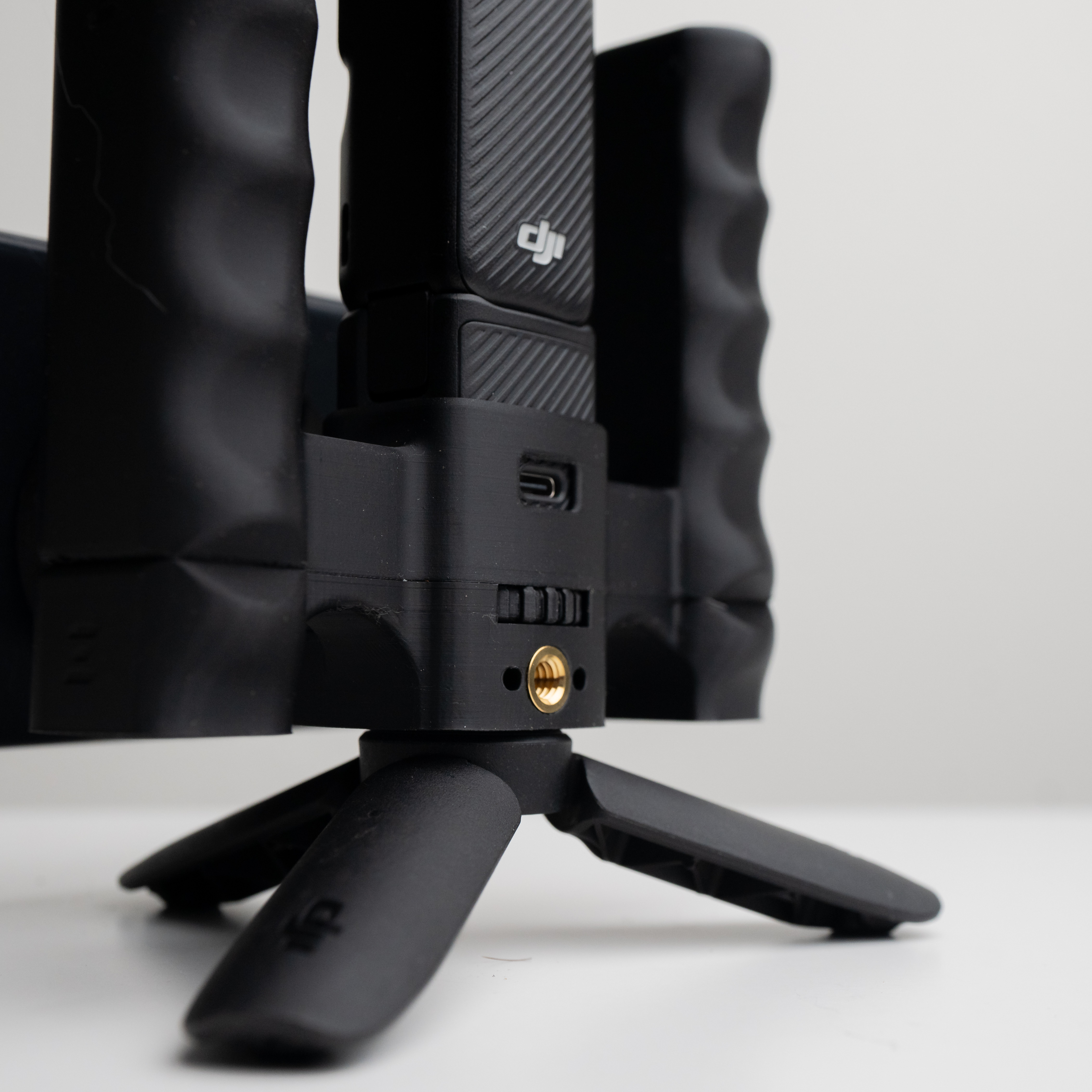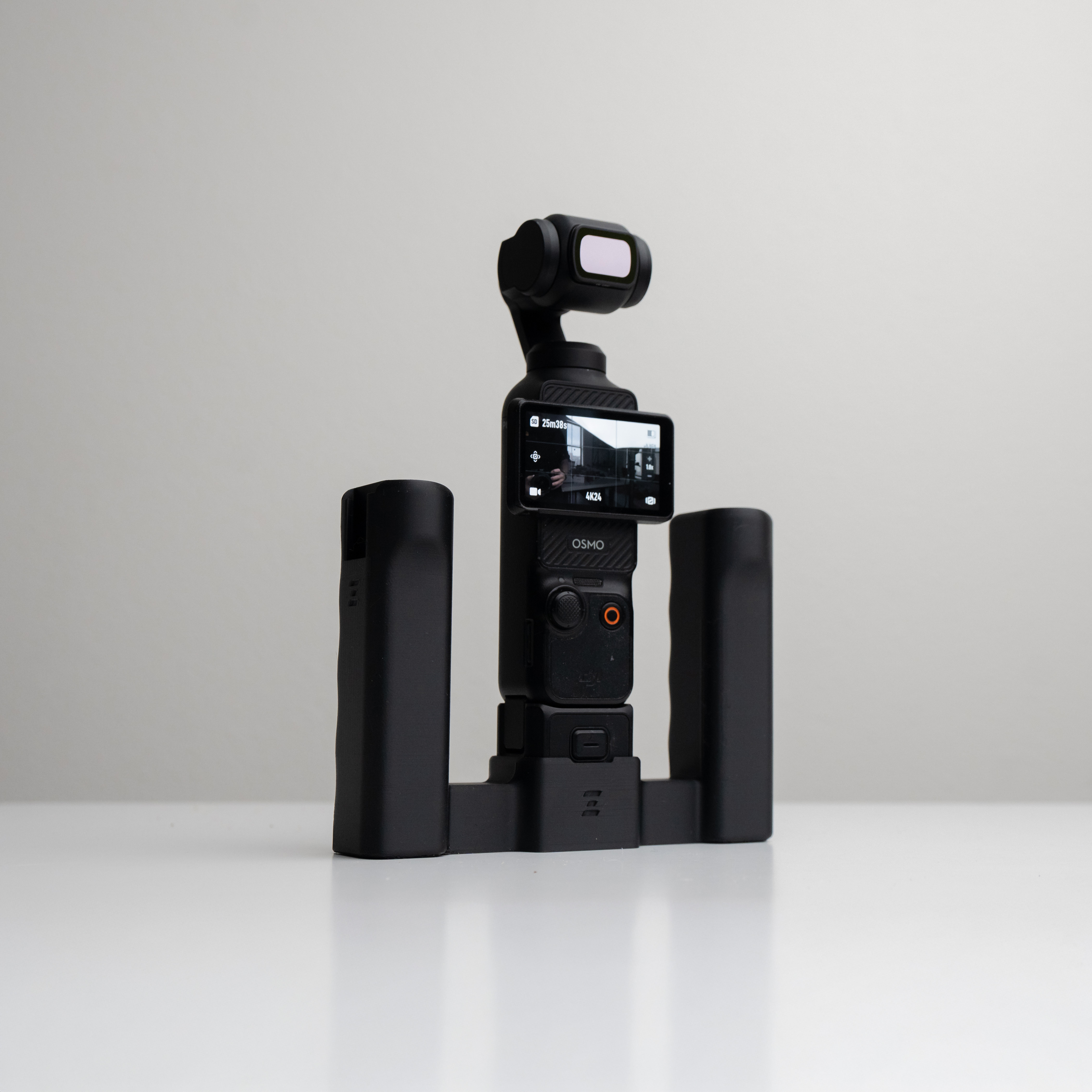 This is the print-friendly STL version of Grip Rig 2 LITE, built for DJI Osmo Pocket 3 creators who want the essentials: dual ergonomic handles for stability, dual cold shoes for mic/light mounting, and two bottom 1/4-20 mounting points for simple builds.
