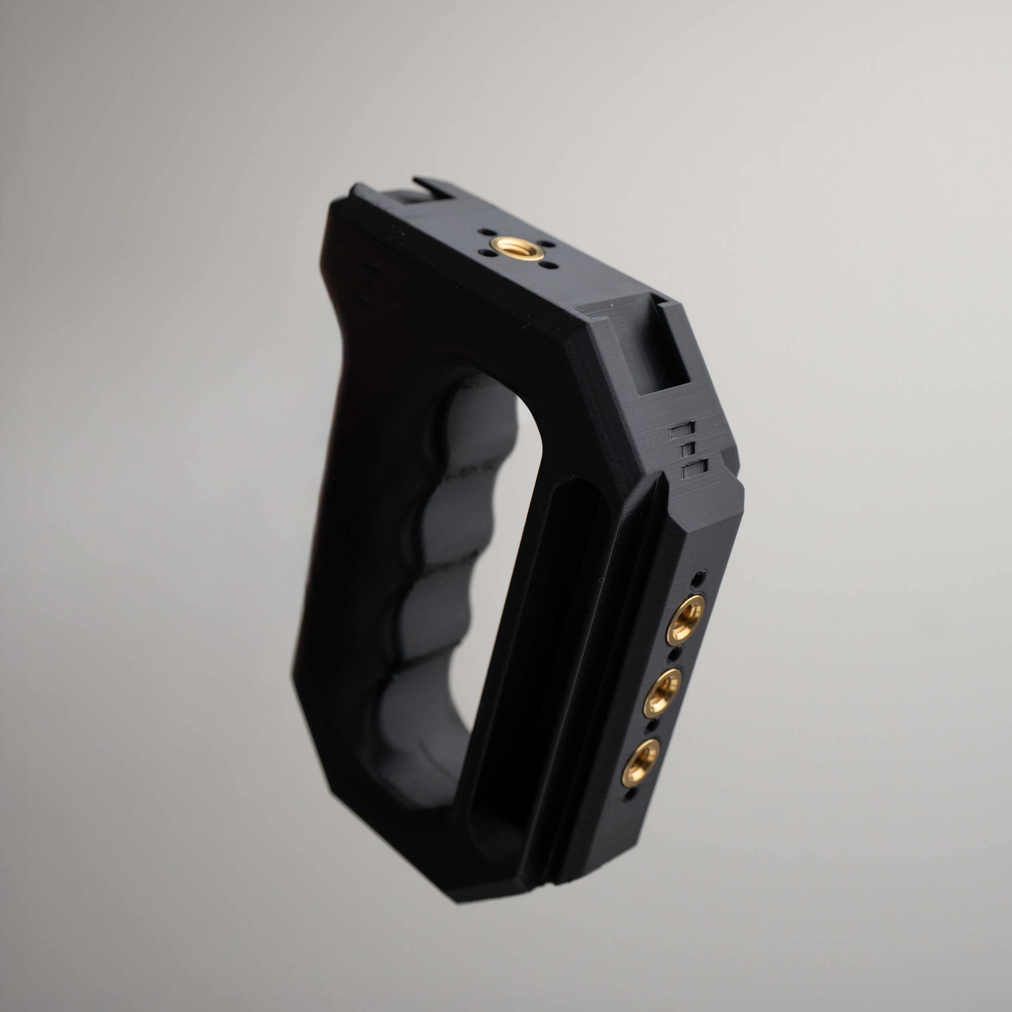 Print-friendly Grip Rig 2 LITE STL for DJI Osmo Pocket 3 creators. Dual handles + dual cold shoes + 2 bottom 1/4-20 mounts.